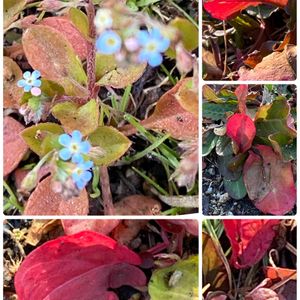 2022,3,4 8:00 久しぶりの小高い公園 途中の生垣の上に1.5mm位のキュウリグサ 桜の木の下お日様に透けた赤い葉が沢山 何の葉かな? キレイ❤️ 写真編集をしてると見つけた‼️ ↘️キュウリグサの花の赤ちゃん 写真を撮る時は見えなかった
