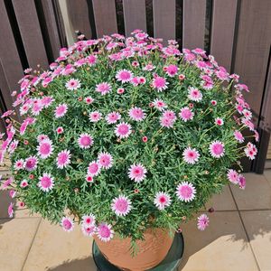 我が家で育てているマーガレット6株のうち4株が咲きだしました😃 今秋にお迎えしましたボンちゃんのサンライズピンクも今日咲きだしました マーガレットはまん丸に育つように鉢をくるくる回して満遍なく日差しが当たるようにしています☺️ マーガレットは大きな鉢に植えるとどんどん大きく生長します😁 でも10号鉢ぐらいまでにしないと移動する時に大変な事になります😵💦 PICの前列のマーガレットは10号鉢なんですよ😃 後列のダークあずきちゃんは16号鉢だったかな😓 (冒険はしない方がいいです💦) 春に向けてたくさん咲き揃ってくれると嬉しいですねー🎵😃