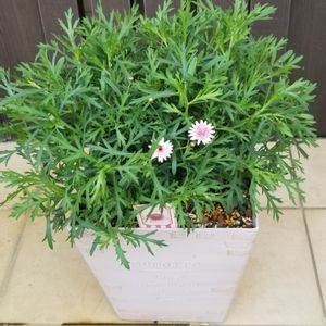 去年の5月に投稿した マーガレットダークあずきちゃん♡ あの時の親株はお友達にプレゼントしました❣️ そして、この子は挿木しておいた子です。 無事に冬越しして大きな鉢🪴に植え替えてあげたので かなり大きく育ってくれました😊 お花もチラホラ咲き始めて また可愛いお顔を見せてくれました🥰