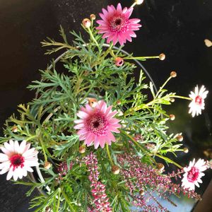 おはようございます☀☀😃 マーガレットの名前「あずきちゃん」 2種だけの寄植えしてみました! 春になるとマーガレット方が成長が早いから分けると良いよ!と教えてもらったの。