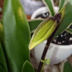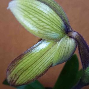 パフィオの蕾 気付けば ずいぶんと 下膨れに変貌してる🙄💭 もうすぐ 開花だね✨