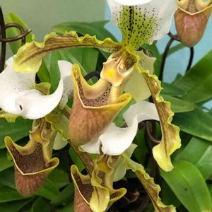 Paph.(Mikawa Mist select × adductum ‘Biwa’) パフィオペディラムのミカワ ミストとアグクタム‘ビワ’の交配種。 今年はパフィオも挑戦していこうと思い交配親をみてカッコいい花が咲きそうだったので買ってみました。 安かったし(*´∀`) ✳︎らんの家TSUTSUMIさん
