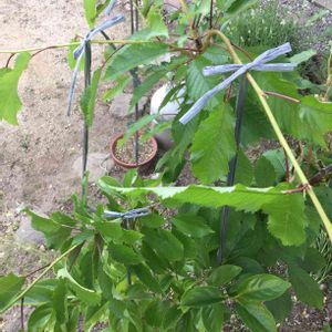 庭の高砂に来年は花芽が欲しくて、まっすぐ伸びていた新芽を引っ張ることにしてみました。 一昨年やってみて、家の一番大きなさくらんぼ(品種不明) の受粉に合ったので、去年は木自体を大きくして枝を増やしていました。