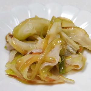【番外編】月下美人を食べてみた😆✨️ 花友チャツネさんに月下美人の花が食べられると教えて頂きました✨️ 早速、昨夜咲いた二輪❀を サッと湯掻いてポン酢で食しました♡ 見た目麗しく、オクラのようなネバネバ感、滋養がつきそうな一品となりました💓 2️⃣ボン酢をかけて、下町のナポレオンのアテに🍻 3️⃣ ←取り除いた蕊 ↑お花部分 ↓花茎部分