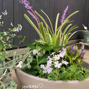 秋の寄せ植え🍁 って…まだポットのままです\(//∇//)\ お天気が悪くて☔️ 庭に出られない💧 リンドウ、キキョウ、ヤブラン、タピアン 早く晴れないかな〜☀️