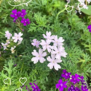 🦚My 🦄Garden✨より…💕 🧺ハンギング✨🧺🦚 💓バーベナ💜🌼タピアン🌼 パープリッシュホワイト🤍💜🤍 # サントリー 🌸オキニイリ💖(❁´ ︶ `❁)💖コノイロ🌸✨ 🦔🍒 匍匐性タイプなので 地植えにも…🌱してます💕