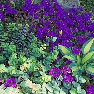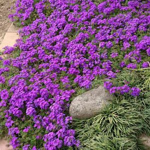 タピアン(バーベナ属)バイオレット 秀逸な株張りだそうです 確かに 1苗を植えて、3年経ちましたが グランドカバー力は、バツグン 昨日レンガを越えた部分✂️して 他の場所に移植しました