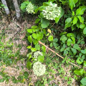 畑のアジサイ。花が咲き終わって色あせて緑色になってる。