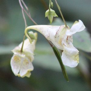 和名 コウサカツリフネ 別名 ミサカツリフネ(神坂吊り舟) ウスキツリフネ(薄黄吊り舟) 岐阜県の恵那山付近神坂峠に咲く白いツリフネソウ。 黄吊り舟の変種。花は葉の下に付き距は巻き込まないところがツリフネソウと違う。 地元の名前が付いた吊り舟草です。 段々と少なくなっている気がします。林道整備で開花前に草刈機で刈られてしまうからでしょうか。 今年も会えて本当に嬉しかった。 ④ ⑤ 黄吊り舟 神坂吊り舟の近くに群生してます