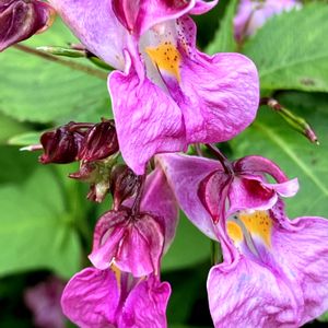 裏庭からのツリフネソウ 蕾いっぱい 花言葉✾心休める 蜜を吸えるのはマルハナバチ🐝だけらしい✨ 不思議なお花🕊 ֒𑁍˖*٩( ᐖ )و˖ ࣪⊹˖ ࣪⊹˖ ࣪⊹🐿️🍀