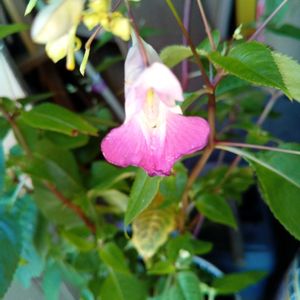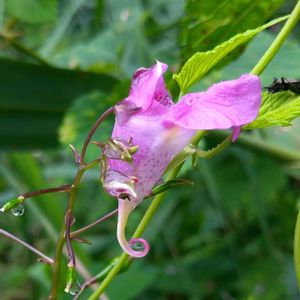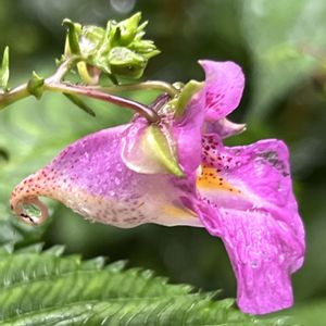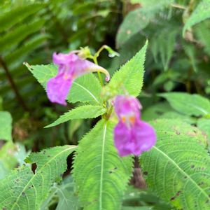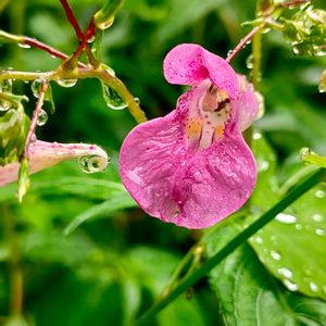 ツリフネソウ 🌱ツリフネソウ科 ツリフネソウ属 ✽多汁質でやや軟弱な一年草で茎は高さ40〜80cm、赤味をおび節が膨らみよく分枝する ✽互生する葉は菱状楕円形で先がとがり、鋸歯縁 ✽径2.5cm、長さ4cm前後の舟形の花がぶら下がる 雨降りだったので、所々に雫が見えます💧 淡い色も可愛いです💕