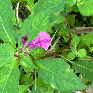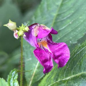 軽井沢に来ています。 白糸の滝に行く途中に咲いていました。水際の道は涼しく24℃。 🩷ツリフネソウ🩷 2024.8.4 緑の中にピンクの花が目立ちました。 ツリフネソウ科 開花期: 9〜10月 花言葉: 「心を休める」「安楽」 「期待」 絶滅危惧ⅠB類 帆掛船を吊り下げたような形。 紅紫色