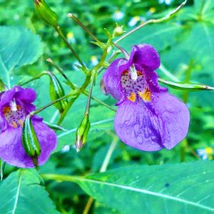 ツリフネソウ もう終盤に近く たくさんの種が付いていました。 膨らんだ種を指で押さえるとポンって弾けるのが楽しくて しばらく遊んでしまった😅 子供の頃ホウセンカでよく遊んだな〜