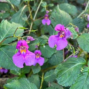ツリフネソウ(釣船草)がたくさん咲いていました。 吊り下げられた帆掛け船に似ていることで命名✨ 赤紫色の花がきれいです🌺🎶 黄色のキツリフネは、見られませんでした😃