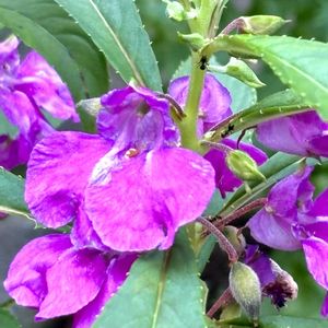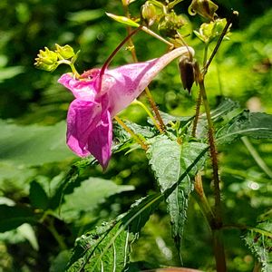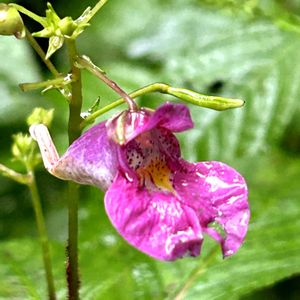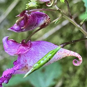 ツリフネソウ 🌱ツリフネソウ科 ツリフネソウ属 ✽多汁質でやや軟弱な一年草で茎は高さ40〜80cm、赤味をおび節が膨らみよく分枝する ✽互生する葉は菱状楕円形で先がとがり、鋸歯縁 ✽径2.5cm、長さ4cm前後の舟形の花がぶら下がる 今年はたくさん見られました♪💜🩷