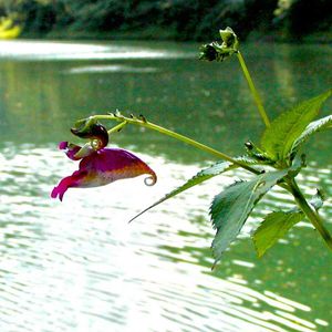 湿り気が好きなツリフネソウ(釣船草) 家の近くの日陰に咲いているコと違って ここの水辺に咲くコはイキイキ✨ツヤツヤ✨ ツリフネソウ科の一年草