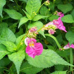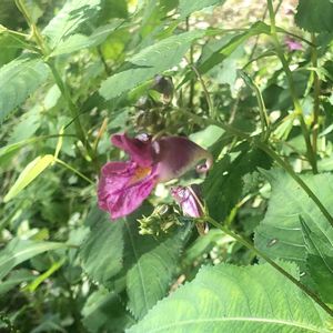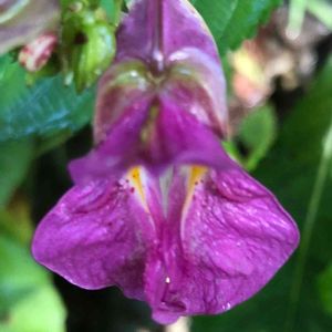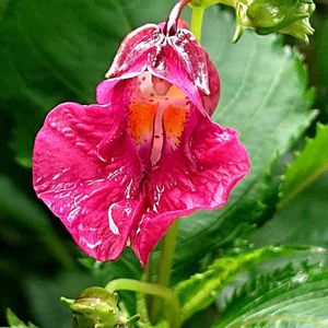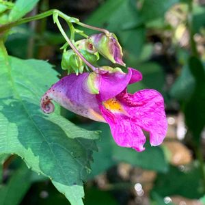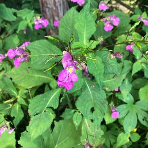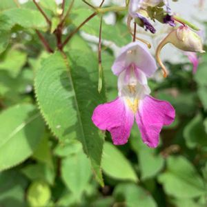 山のふるさと村 ツリフネソウ(釣船草, 吊舟草)、ツリフネソウ科ツリフネソウ属の一年草、別名 ムラサキツリフネ 🐝… 🌼花言葉 「安楽」「心を休める」「期待」「詩的な愛」「私に触れないで下さい」「私に触らないで」
