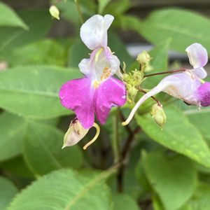 ツリフネソウ(釣船草)が咲いていました。 ツリフネソウ科で、ムラサキツリフネ(紫釣船)とも言われます💜🎶 花の様子が、吊り下げられた帆掛け船に似ています💕😃