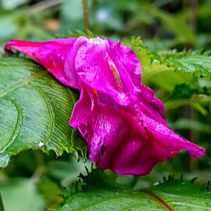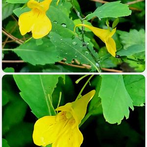 ☔(^^)/お疲れ様です 今朝の庭から なんともユニークな形の キツリフネソウが咲き出しました 花言葉✾Touch me not 私に触らないで😆😂 有毒植物だからかな プラ〜〜〜んわりと好きな山野草です😁 🕊🕊➰⋆.⊹⋆.ꕀꕤ*。゚🐿️🍀