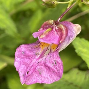こんばんは😊 ~ツリフネソウ(釣船草)~ 我が家のツリフネソウ🩷 咲きました ꉂ🤭︎💕 名前の由来 花の形が 帆かけ船を釣り上げたように 見える事に由来してるそうです 角度を変えて見ると👀✨なるほど... 有り難い 野草です😊🙏