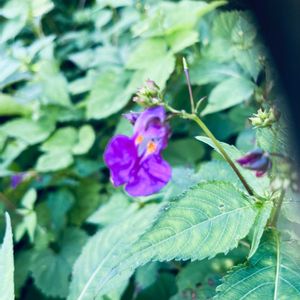こんにちは😊 今日は3枚投稿しますね💕︎ 1️⃣花友さんが苗で送って下さった ケラトテカ.トリロバ 初めましてのお花 夏から秋まで咲いてるお花だそう です ホントはもう少し下の方 開く予定でしたが お花自体 取れ てしまいましたm(_ _)m ですが😁 別の蕾 付いてるので 咲くのを楽しみに🥰 ありがとう🫶💕︎︎ございます 2️⃣メ〇カ〇から 昨年 ((꜆꜄ ˙꒳˙)꜆꜄꜆ pochiとした 朝顔のブルーミントツイスト 紫💜のストライプが 心惹かれる こんな柄の浴衣あったらなぁ😆 3️⃣ツリフネソウ 大きくなりました 🙆🏻♀️まʓ♡