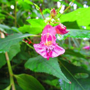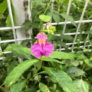 上の画像がツリフネソウ(釣船草) 下のがキツリフネ(黄釣船) 花期:7月〜10月 花の形が帆掛け船を吊り下げたように見えることからの由来で付いた名前だそうです。 花冠の基部近くから後ろに突出した部分先端がクルッと巻くのはツリフネソウで少し見えるかな😄キツリフネはだらんと垂らすそうです。そこは見えてますね😊