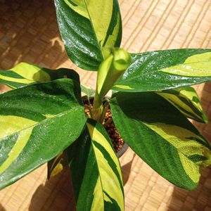 緑色の葉っぱに黄緑色の模様が入った美しいカラーリーフのクテナンテ・ルベルシアーナです。 見た目は、カラテアに似ていますがクズウコン科・クテナンテ属。 別名・ハッピードリームという名で出回っているみたいです🪴 ひとつ前の新葉は緑一色だったので先祖返りをしたのかなぁと思っていましたが、今回は期待通りの斑入り模様が入っています💚 真ん中から新しい新芽が出てきているのでこれからの成長が楽しみです🚿💦
