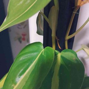 フィロデンドロン ブラジル 2021/10/19撮影 ヘゴ仕立てにして、なんか根がヘゴにくっついてきた! ホッチキス外しても大丈夫かな。 ちなみに、ポトスはヘゴ仕立てにすると新しくでる葉がオなるって聞いたけど、フィロデンドロンは違うみたい。