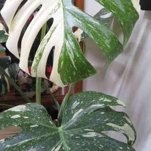 モンステラ 斑入り 2021/7/3撮影 去年の夏、お嫁に出した子の様子を見に行きました。 大切にしてもらっているらしく、こんなに美しい姿に! 我が家のよりも、大きくしっかりした茎&葉に驚きました。