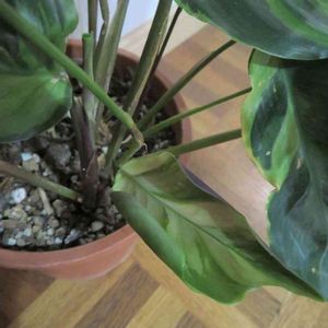 カラテア メダリオン かな? 2021/2/4 両手を閉じたように、葉っぱが向き合ってしまっています。 模様がよく見えないのですが、雰囲気から言って、メダリオンなのかなぁ。 偉そうに「メダリオン」なんて書いていますが、この名前を知ったのは3分前(*´艸`*) ノリで連れ帰ったカラテア達、乾燥させないよう気をつけなくちゃですね。 ちなみにこの子は、新芽ドリルが2本も出ています♪