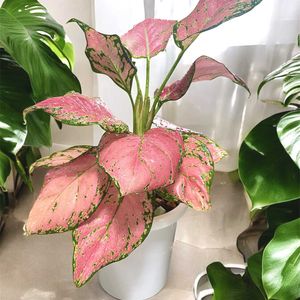 葉模様が美しく、主脈はうすピンク色をしているアグラオネマ•ピンクバタフライ🩷💚 茎もうすピンク色💕😍 スマホでは実際の色味が出ないのが残念です😢