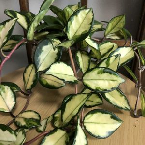 ホヤ トリカラー✨🌿 度重なるカイガラムシ被害で駆除のループ🔂なんとか元気だけど花は咲かず…😅ピンクのツルが長く伸びてます♪withスヌーピー 🏷️2のつく日は斑入りの日 🏷️斑入り見つけ隊♪ 🏷️毎月2日はスヌーピーの日