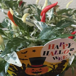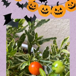 ハッピーハロウィン🎃👻🐈⬛🎶💣 斑入りソラナム(実は熟すとポロリと落ちてきてカワイイです♡➡️見かけた畑のカボチャさんたち🎃アレンジpicです 🎃とうとう10月も最終日・まつび ♡来月もよろしくお願いします♡ 🏷️斑入り見つけ隊♪ 発起人