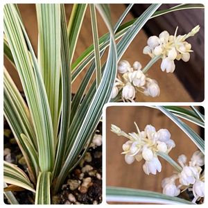 スノードラゴン🐉 園芸店で見つけました♪ 🌿✨🌿斑入り葉に白いお花♡🥰 けれどユリ科の植物は🐶にとって猛毒なので御用心👀見るだけに♡ 🏷️斑入り見つけ隊♪ 🏷️2のつく日は斑入りの日