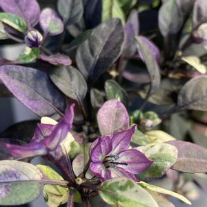 鑑賞用トウガラシ🌶️大好きな斑入りちゃん✨連作障害?夏バテ?成長ゆっくり😅ようやく花が咲き始めました♡ 🏷️今日のお花 🏷️愛しの紫 🏷️斑入り見つけ隊♪