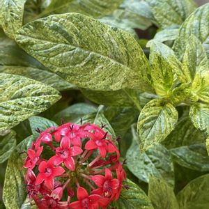 斑入りペンタス・サマースター✨🌿寒くなったけど、まだ咲いています❤️➡️全体像🪴まだ終日ベランダですが、そろそろ防寒カバーしようかな😅 1日遅れですが、真っ赤な火曜日に参加させてくださいね 🏷️2のつく日は斑入りの日 🏷️斑入り見つけ隊♪