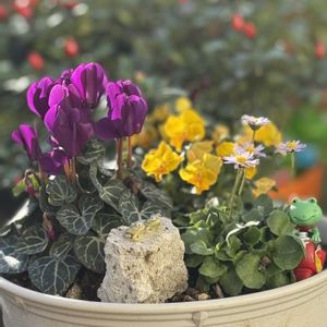 ➀シクラメンドラゴン🐉 大好きな紫💜🪴 ヌーヴェルヴァーク💛 イイ香りがします꒰ღ˘◡˘ற꒱ イングリッシュデージー 可愛いお花🩵 ➁➂斑入りサザンクロス 紅葉してきれいです🍁 ➃撮影中にツマグロヒョウモンが 飛んできました。 羽がボロボロです😞 🏷カエル仲間 🏷毎月6日はカエルの日 参加します🐸₍⁽ॱ⁾⁽ॱ⁾₎