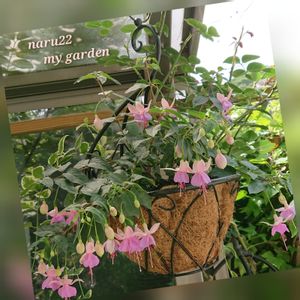 先日postしたフクシア💗はじょうろ型の鉢に植えていたのですが、フクシア💗はぶら下げて下から見た方が可愛いと思い、ハンギングバスケットに植え替えました🎐 やっぱり可愛い😆🎶正解🙆
