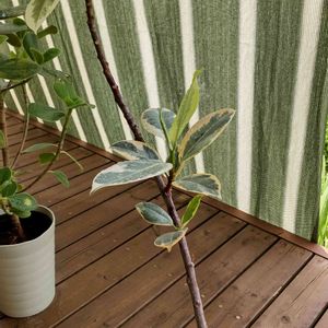 あまり映えない写真ですみません😣💦外の日陰に移したフィカス ティネケです😃 いつも放置気味になってしまうため、なかなかもりもりにならないのですが、茎の中間点の芽が伸びて立派な葉となり育っています! 頂点より中間点の芽の方が元気です😂 もともと同じようなサイズだった実家のティネケは、陽当たりの良い窓辺管理で、カーテンレールに届くくらいに大きくなっているのになぁ(笑)😂 うちのもモリモリに育ってほしい…😂