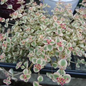 このブラックオブツーサ錦も屋外の日陰できれいな形が戻りつつあります…✨😂💕 斑の部分がピンクに染まってかわいいです🥰💕💕 窓辺だと斑も白く、葉がビョンビョン伸びていました(笑)🤭💦 窓辺管理の頃の姿は、昨年の8/11の投稿でご覧いただけます…🙇♀️