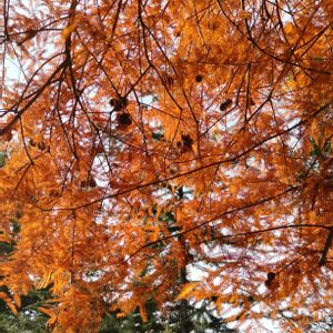 おはようございます😊 いつもありがとうございます♡ いつもの散歩道🚶♀️🚶♀️🚶♀️ 公園の風景 ラクウショウの紅葉が鮮やかでした🍁🍁🍁 2025.12.5 📷️