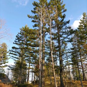こんにちは〜😊 いつもの散歩道🚶♀️🚶♀️🚶♀️ 公園で まっすぐに天に向かって立つユリノキとセンペルセコイア🌲🌲 2025.12.5 📷️