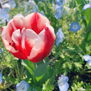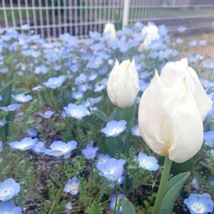🌷暑がり家のチューリップリレー🌷 チューリップは球根から ネモフィラは種から 共に冬を過ごしたお仲間です🥰