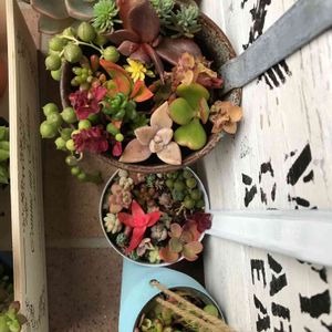 久々に寄せ植えしました。 momoさん缶に鉢(>ω<〃)~♡ 杏さんピック(>ω<〃)~♡ 私の下手くそな寄せ植えがレベルアップしたようです!ありがとうございます!