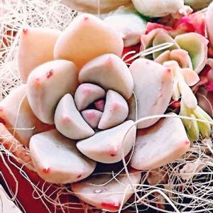 初めて買った多肉、ピンクプリティ😊 この子が冬を越す頃には、私も多肉2年生✨ 買った頃より肉厚になった⁉️ 今は先だけピンクで、優しい色☺️ 四季を通して、いろんな姿を見せてくれます💕