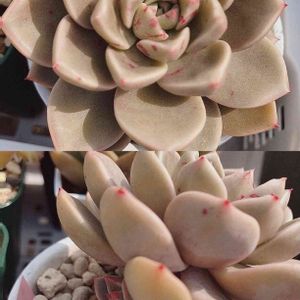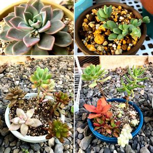 前picのビフォーアフター😆 左 10月16日に寄せ植え 右 3月29日現在 用土は鹿沼細粒のみです 1月下旬ぐらいに、苗が引き締まったことで出来た隙間を、同じ品種で埋めました。 新しく植え込んだ苗と、紅葉した苗で柔らかいグラデーションになって、長い間楽しめそうです😆 ピンクプリティ、秋麗、白牡丹、姫秋麗、ドラゴンズブラッドの5品種です 来年はどうなっているかな〜夏はどーしよっ😇💦)