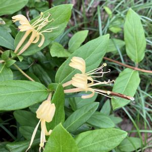 今日のお花 スイカズラ お散歩中 色々な場所で咲いてました 別名 金銀花(キンギンカ) 生薬名 忍冬(ニンドウ) と言うそうです