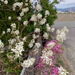 ジュンベリーの白い花。 我が家の庭も、春が進んでいます。 4/3に撮りました。 暖かいと、いっきに満開になるかもと思っていました。 今日は少し肌寒く、お花がかわいい状態に保たれています。