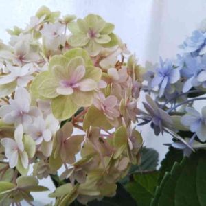 🌸テマリテマリ🌸 ハイドランジアとだけの表記でしたが 多分、テマリテマリです。 6/2に激安で購入後、最初はピンクだったのが、だんだんとグリーンぽくなってきました。 この色合いがいいわー😀右のはブルー系。 室内の出窓に置いてます。