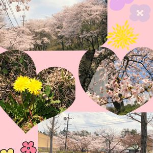 豊田市鞍ケ池公園の桜🌸とタンポポです。今日は天気がいいのでお散歩してる人が多いです。